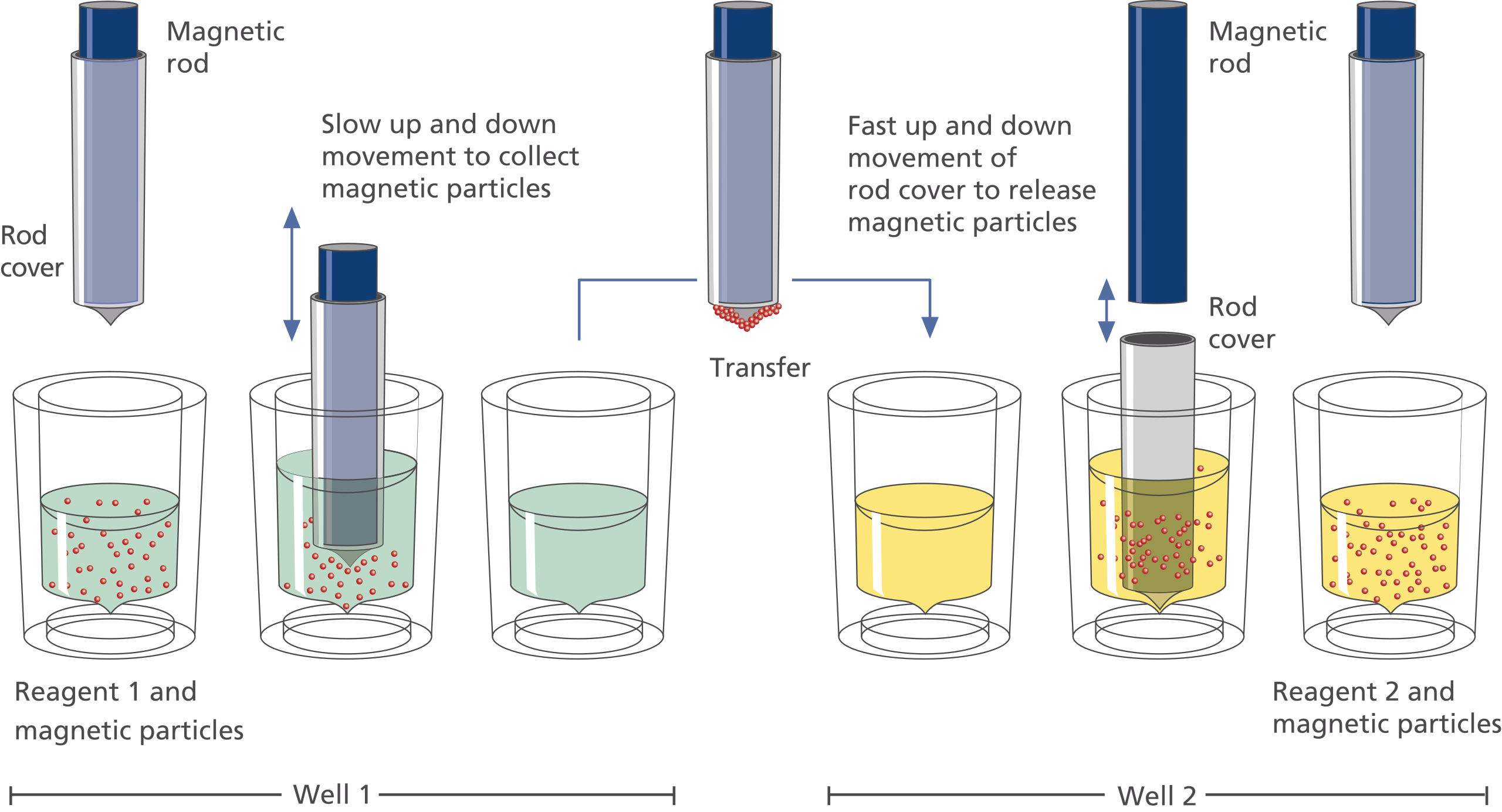 4. Automated purification: The system performs lysis, binding of nucleic acids to magnetic particles, washing and elution without further user intervention.